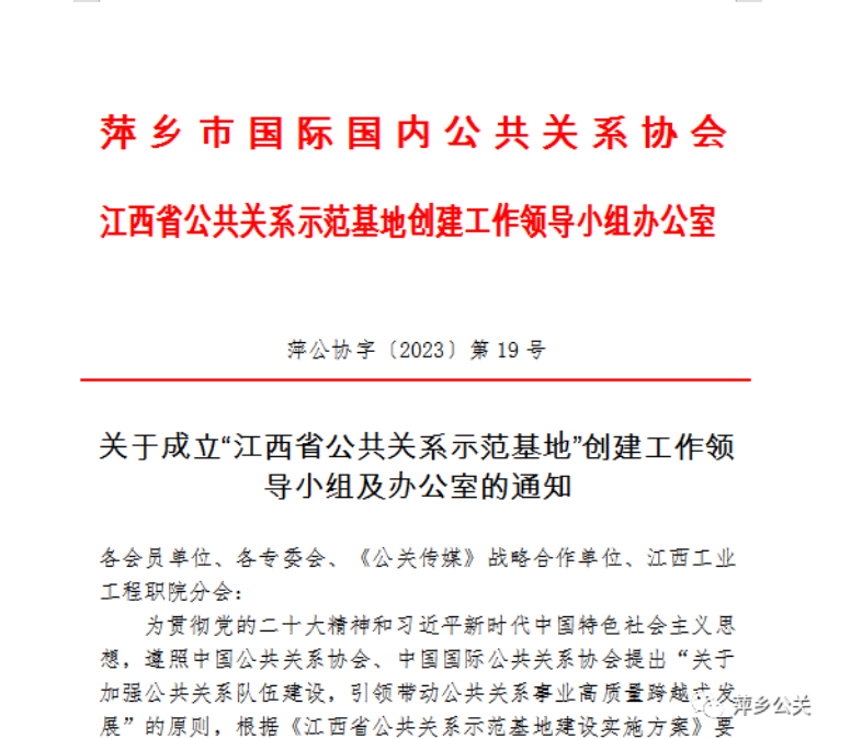 关于成立“江西省公共关系示范基地”创建工作领导小组及办公室的通知